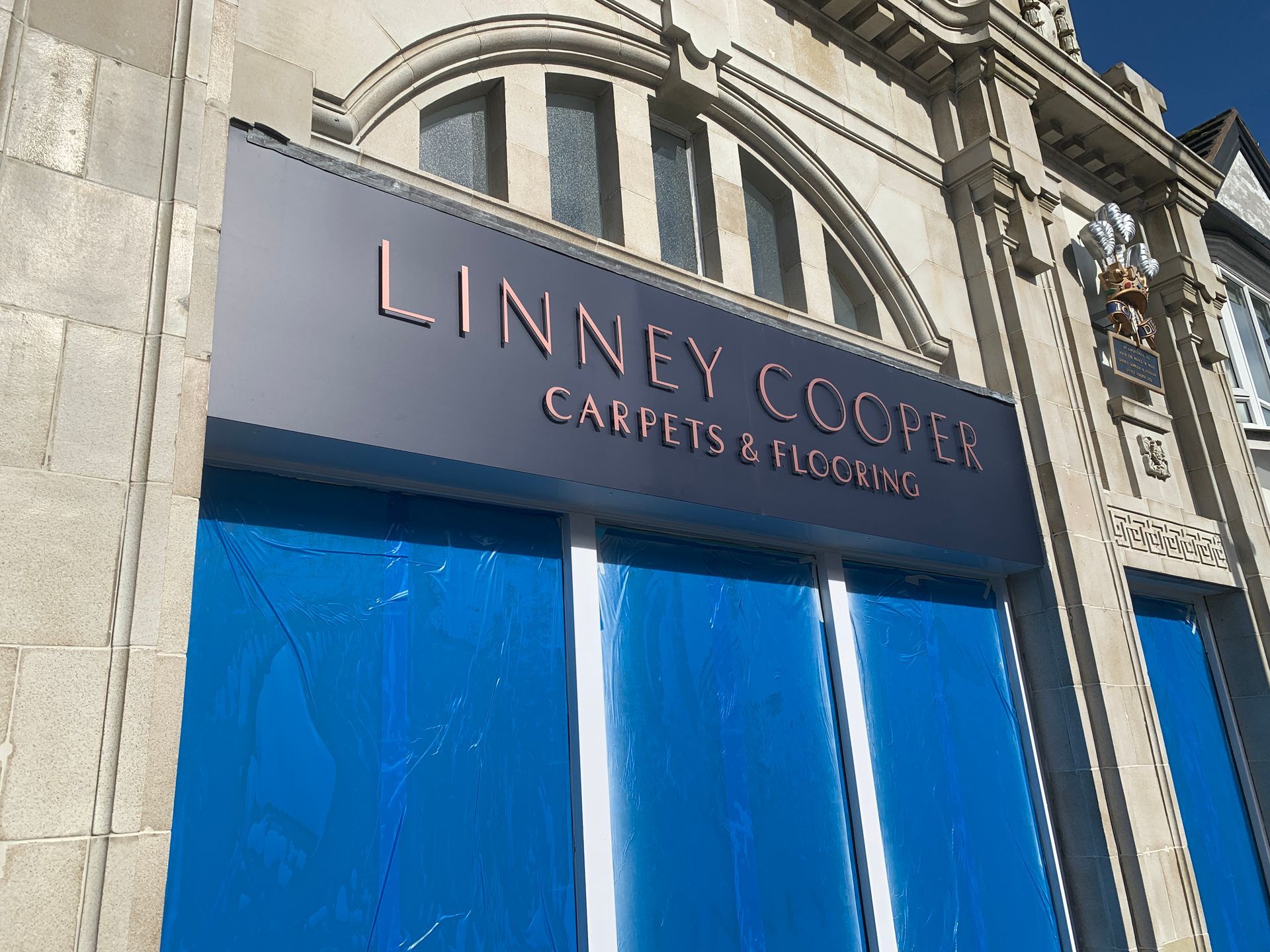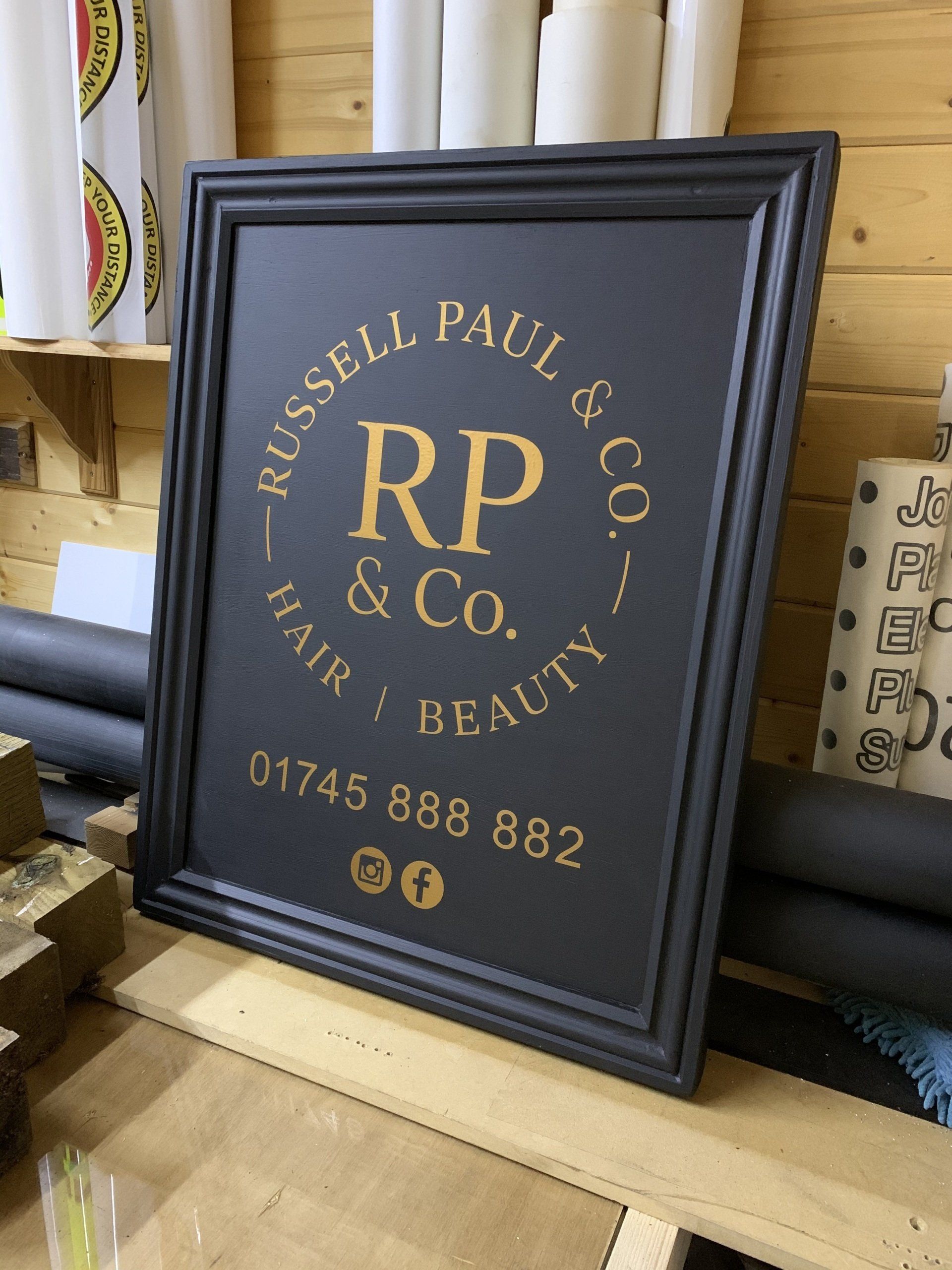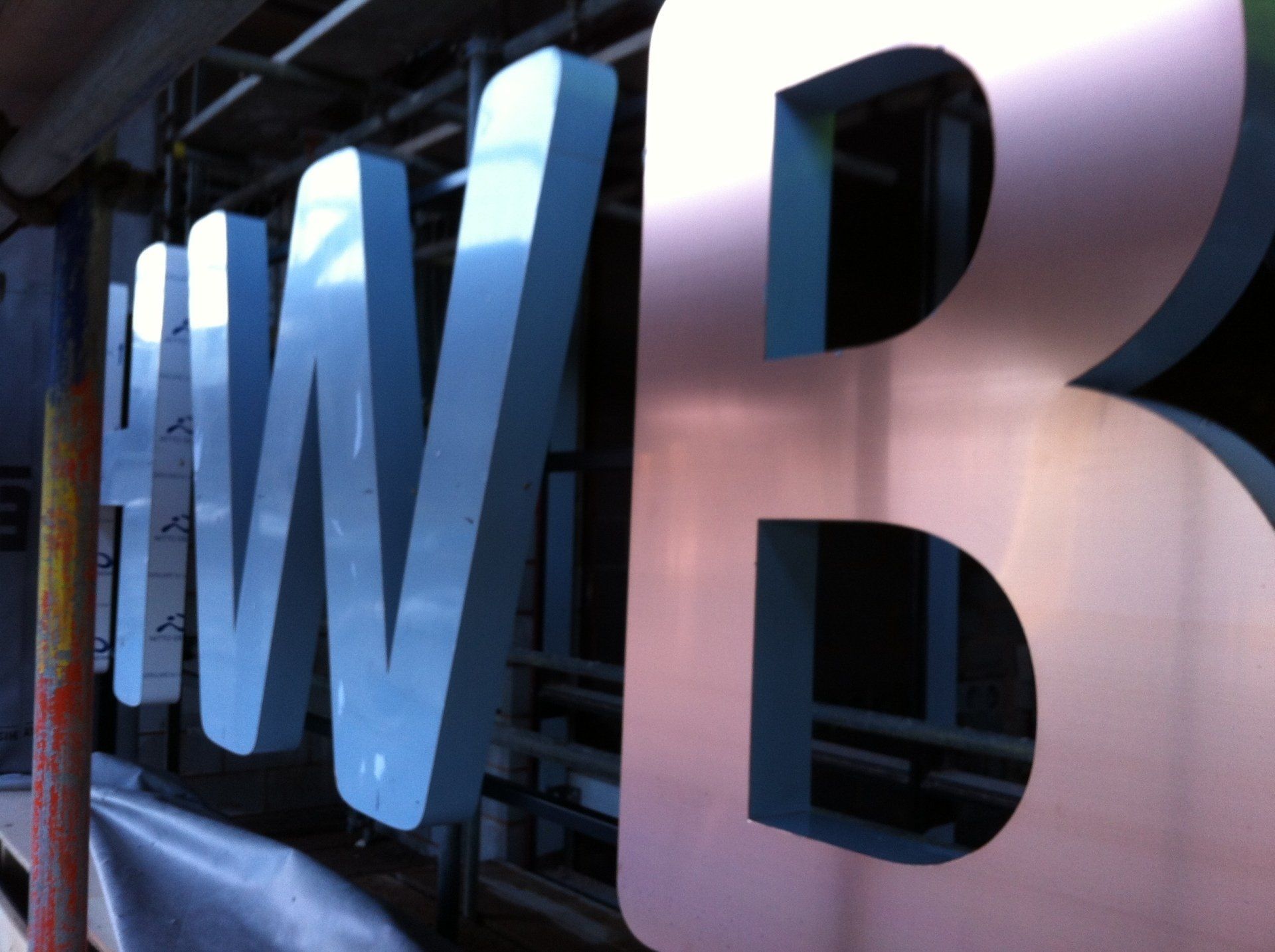 Folded Brass Lettering mounted on Black Steelwork Frame