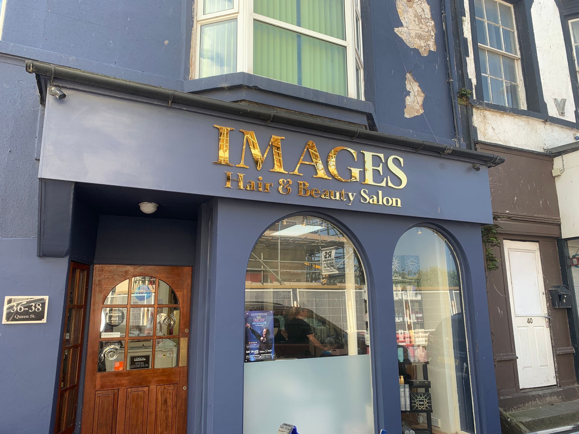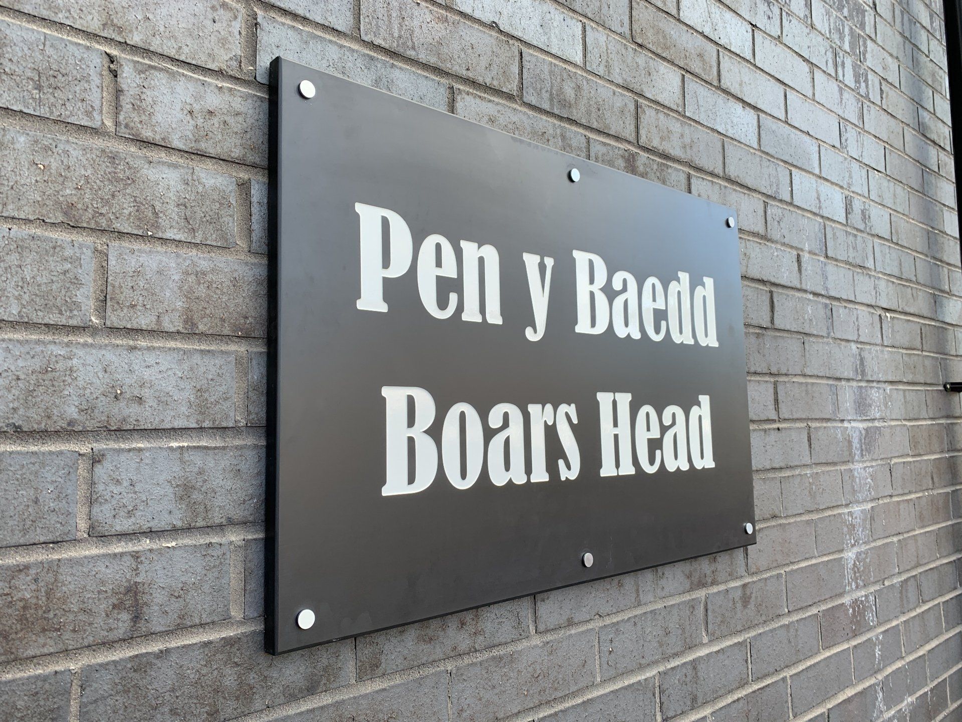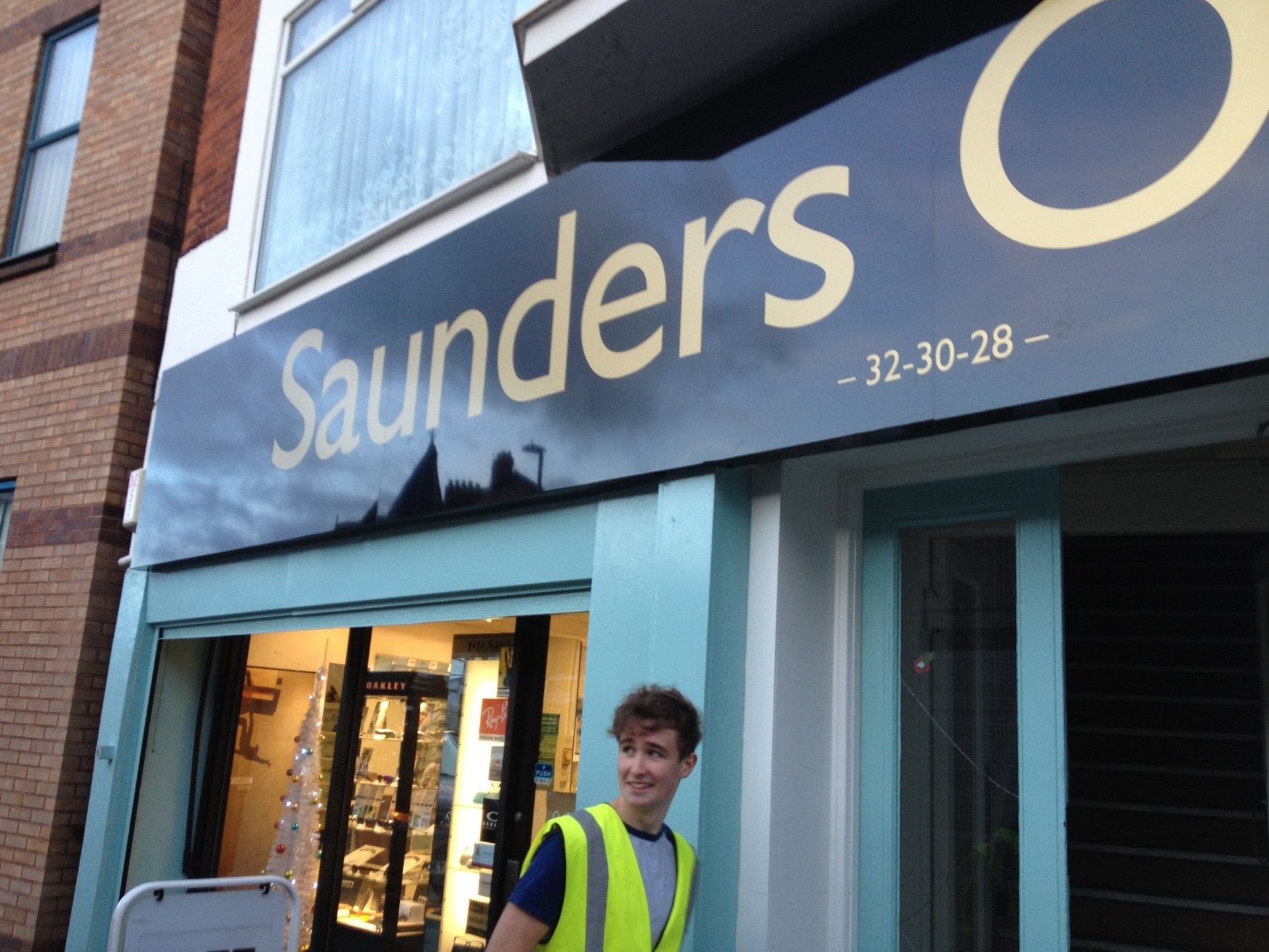 Folded Brass Lettering mounted on Black Steelwork Frame