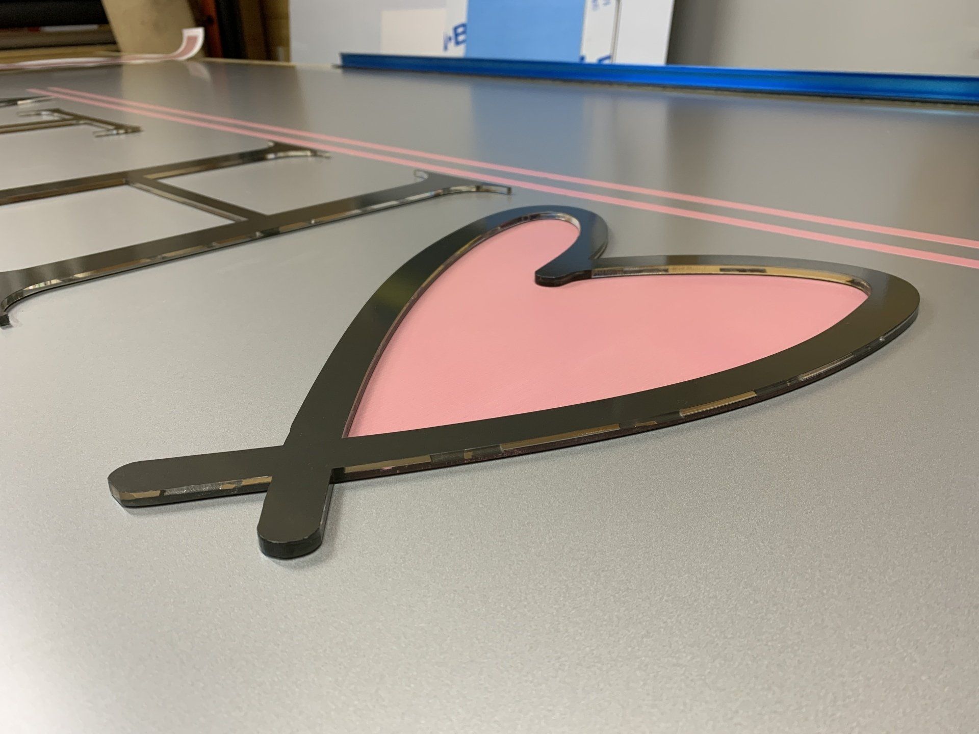 Folded Dibond Tray with Raised Perspex Lettering Full LED Lights to achieve a glow effect